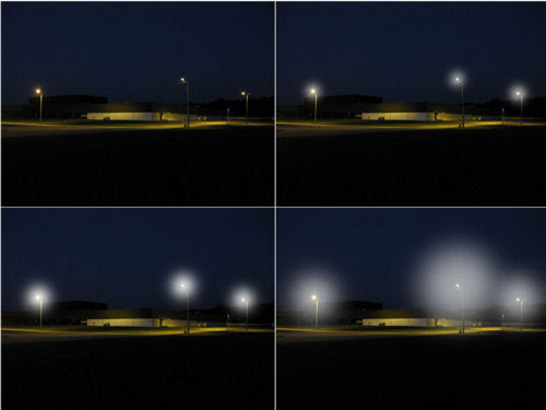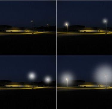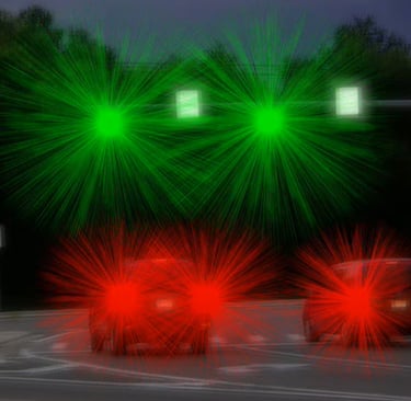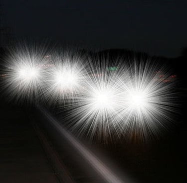 Les éblouissements ou starbursts se présentent comme des rayons ou éclats lumineux en étoile, diffusant autour de la lumière et la rendant aveuglante.