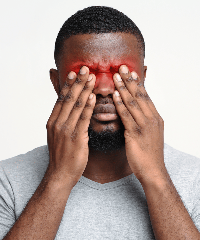 Douleur oculaire chronique, décrite comme brûlure, coup de couteau ou sensation de corps étranger